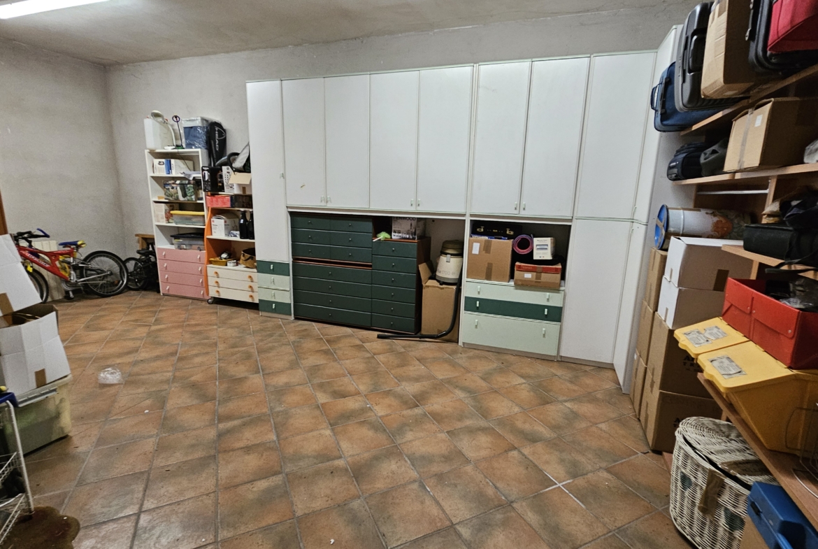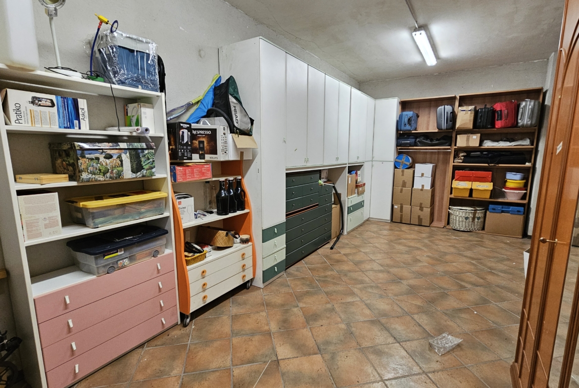 Completano la proprietà una spaziosa cantina piastrellata di circa 30 mq e un ampio box auto doppio di circa 35 mq, dotato di serranda automatica.