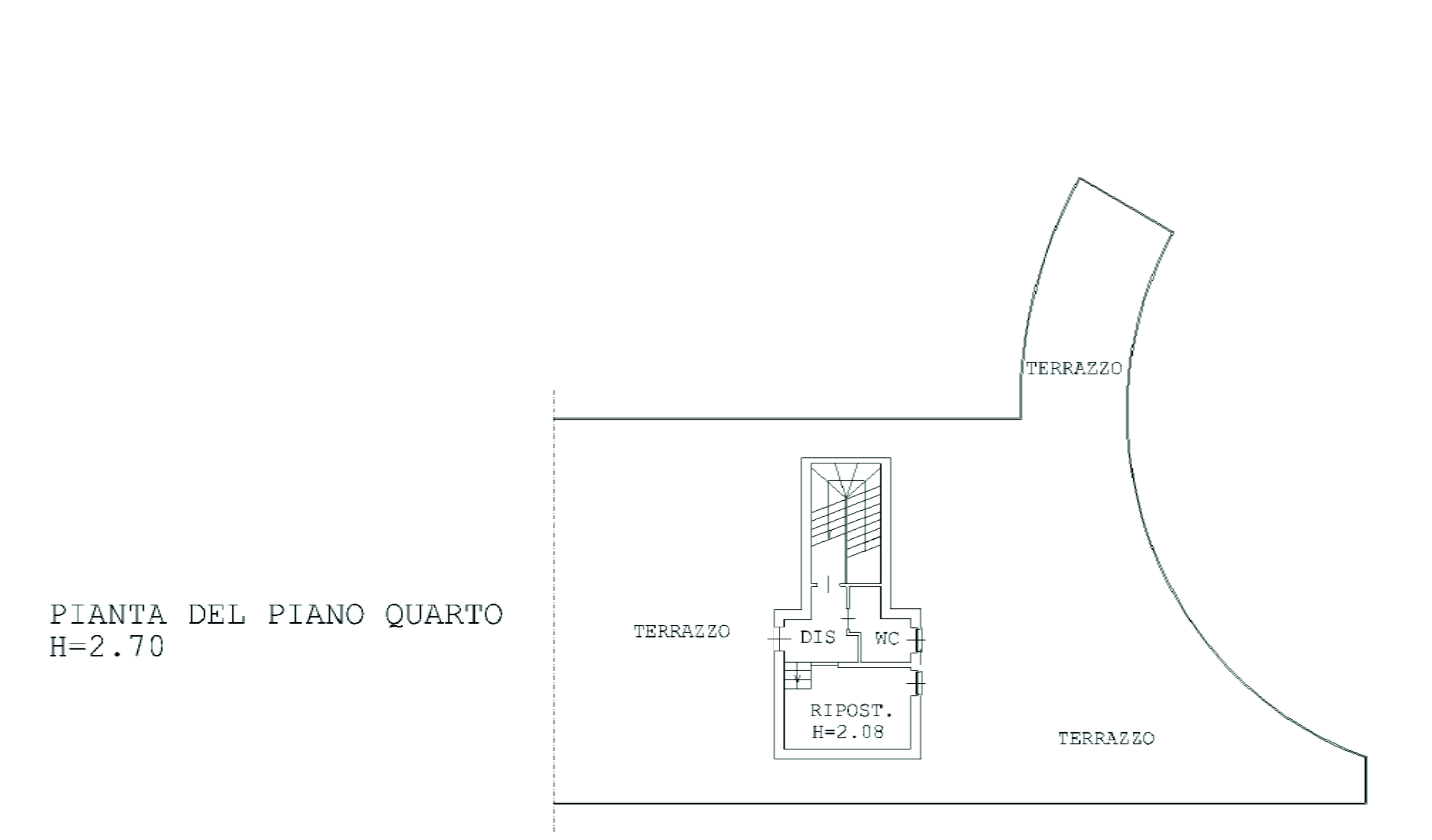 Tramite scala interna si raggiunge il 4° piano, dove abbiamo un mini appartamento composto da angolo cottura, camera, bagno con box doccia e accesso al terrazzo di oltre 300 mq.