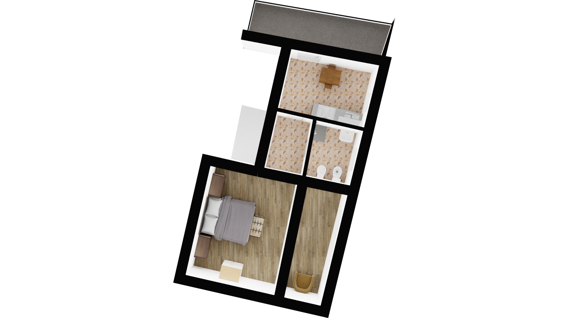 L’alloggio è composto da ingresso, cucina abitabile, un bagno, una camera da letto e un terrazzo. A completare la proprietà abbiamo una soffitta.
