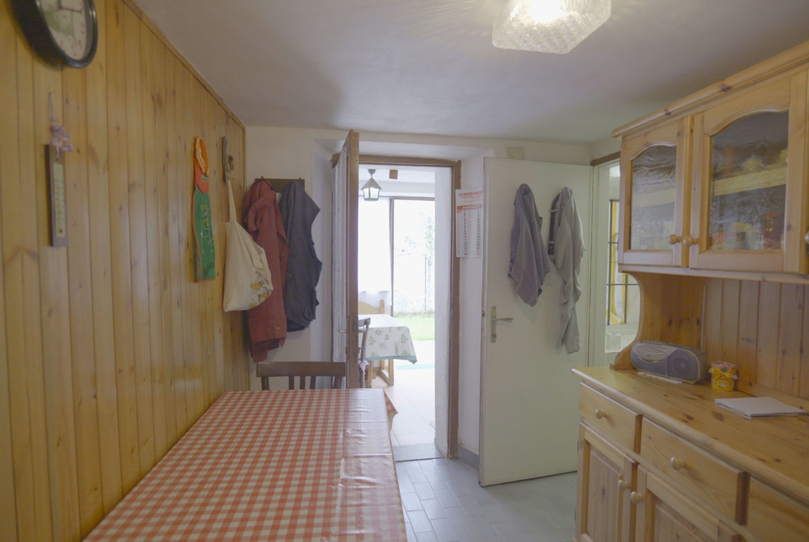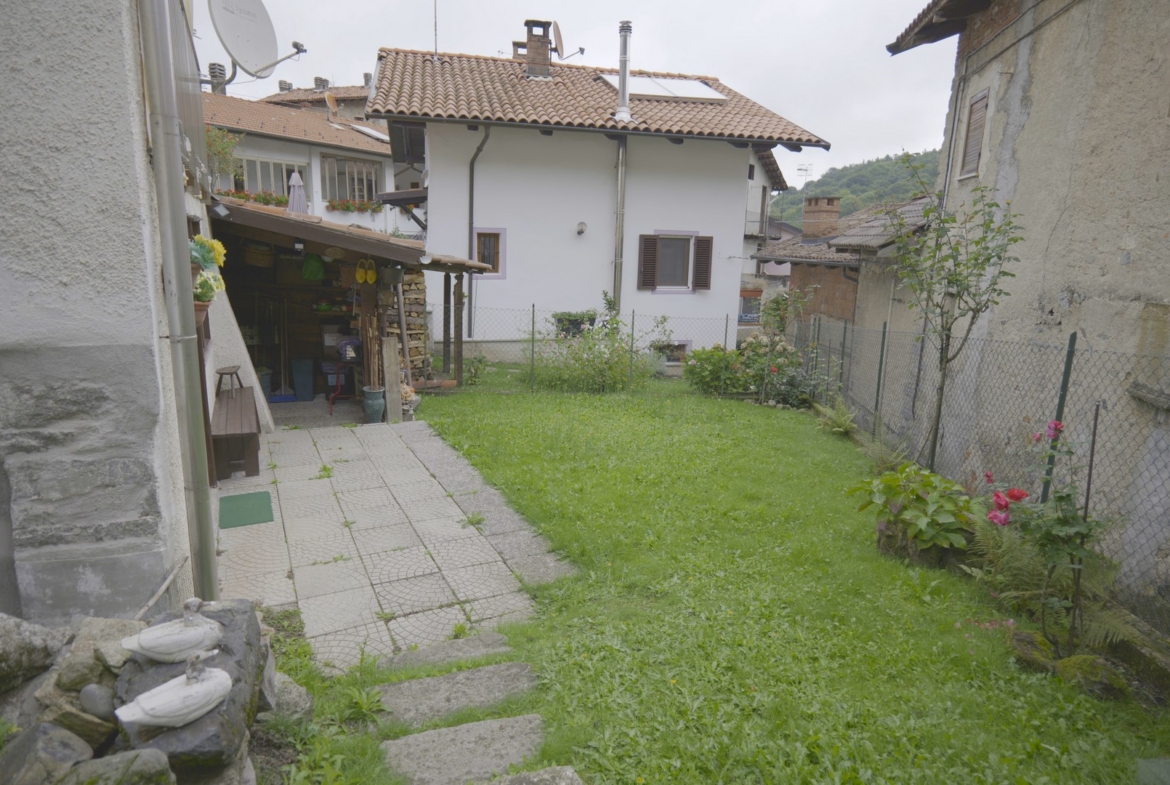 Scendendo al piano inferiore, si trovano la cucina e un bagno. Da qui si accede al giardino privato di circa 100 mq, un’oasi di tranquillità dove rilassarsi e coltivare le proprie passioni. Un pratico capanno per gli attrezzi rende la cura del verde ancora più semplice.