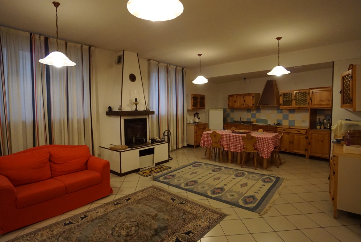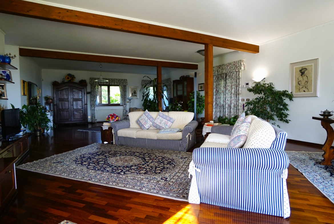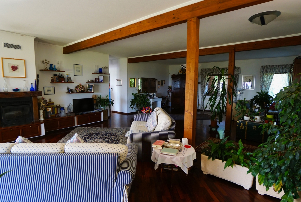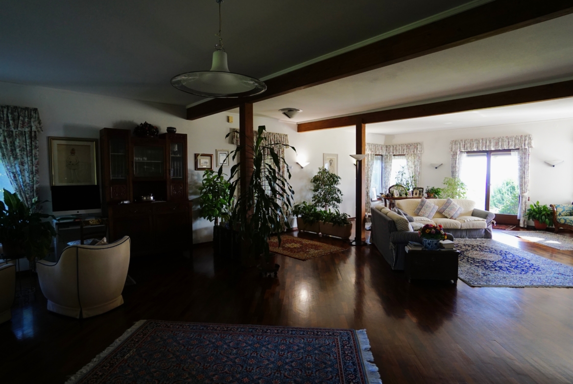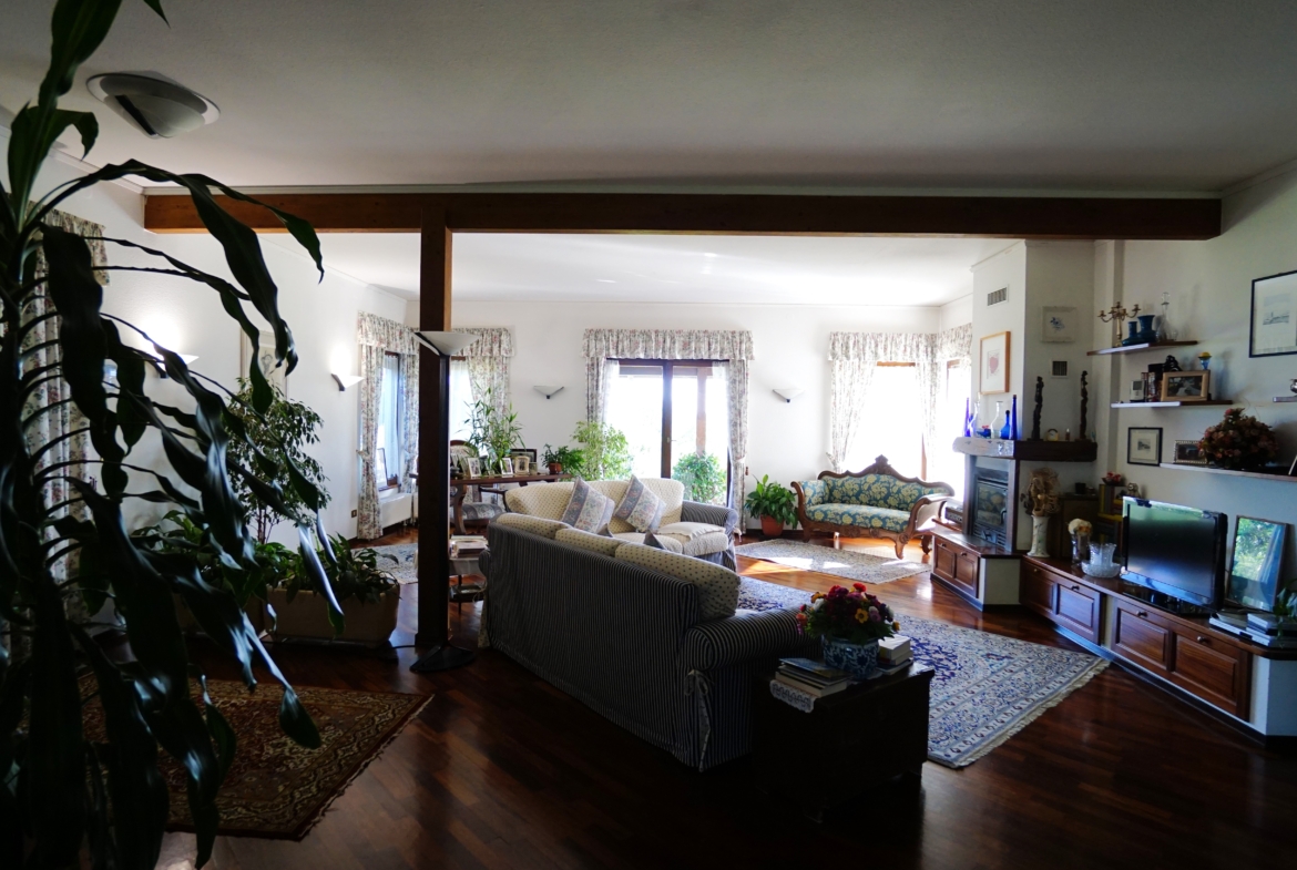 Attraverso delle graziose scale in legno si accede all’appartamento principale: dall’ampio salone di circa 80 mq, con camino e splendide vetrate con affaccio sulla grande terrazza, si gode una magnifica vista.