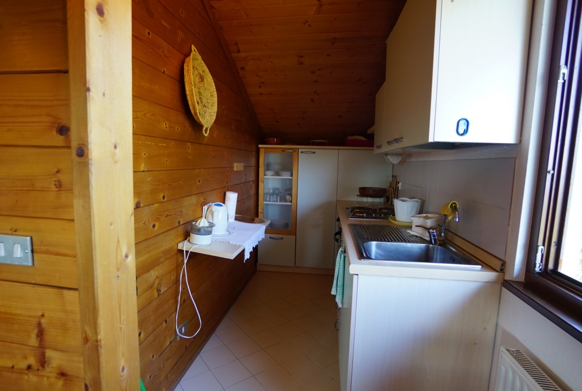 Ha una cucina abitabile arredata e a vista, un delizioso soggiorno con due ampie vetrate, che si aprono sullo splendido panorama circostante.