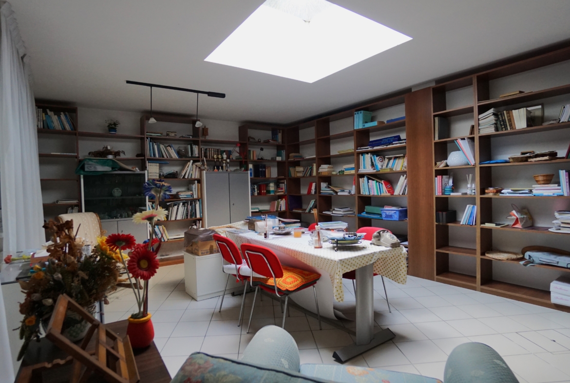 Al piano terra, si trovano una taverna di circa 80 mq, completamente arredata e con camino funzionante; un grande locale studio-biblioteca illuminato anche da un lucernario da cui si vede il giardino; uno sgabuzzino, un locale caldaia, un bagno con ampio locale doccia separato, una grande lavanderia e una cantina attrezzata.